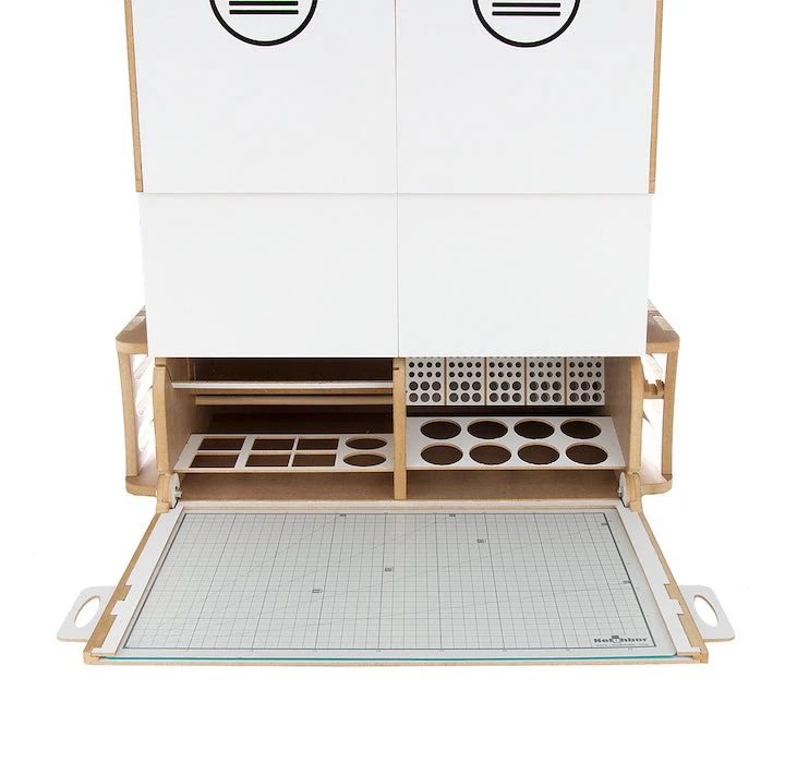 - A work space where cutting mats are stored and opened/closed together