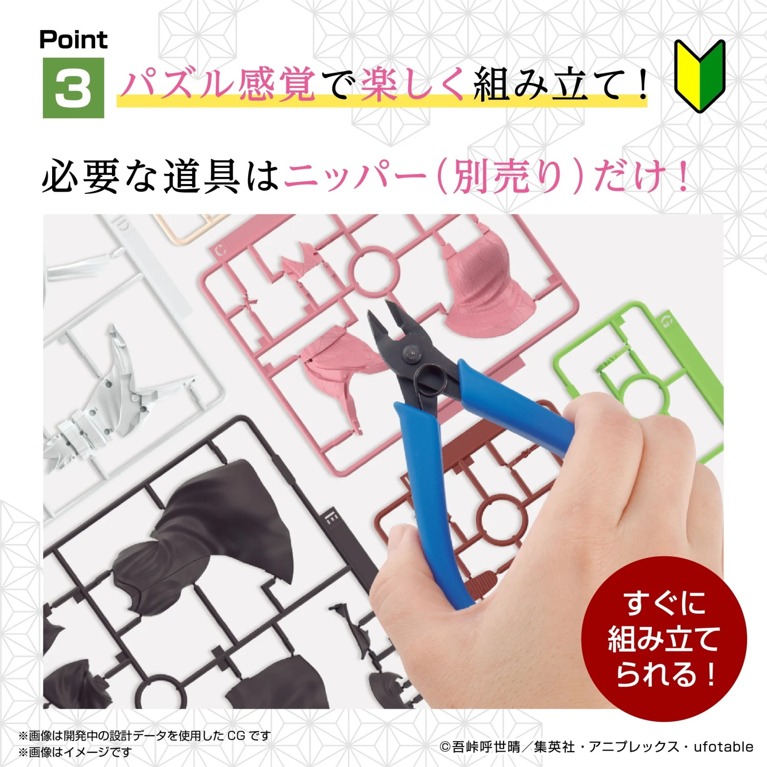 Nezuko Kamado from “Demon Slayer: Kimetsu no Yaiba” is now an easy-to-assemble figure model kit from Bandai! Her kimono pattern and wrinkles have all been carefully sculpted; her eyes and eyebrows are tampo-printed. Her fluttering hair has been made by dividing it into different parts, and the gradient color at the ends of her hair is made with pre-painted parts. The kit is molded in color so the need for paint is minimized, and a base for display is included. Order her today!