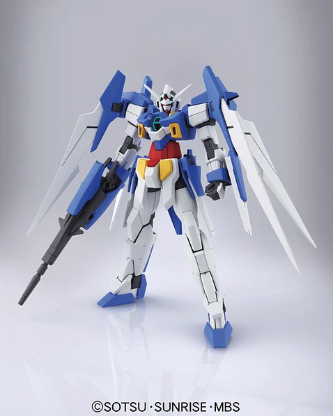 The Gundam AGE anime is not yet that old but here we already have the AGE-2 Normal. The AGE-2 takes over for the AGE-1 (linked below) and brings quite a lot of changes to the table. The biggest one – AGE-2 Normal can transform with only miminal parts swapping. In its regular form the AGE-2 Normal carries its weapon in its hand but in Strider form the weapon becomes the becomes part of the form itself. Included in this great HG kit are two beam sabers, extra hands, and even a display stand!