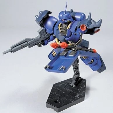 A custom unit made for use by Rezin Schnyder, this impressive blue Geara Doga introduced in “Mobile Suit Gundam: Char’s Counterattack” has at last been done justice with the release of this sharp snap-fit kit! Molded in color, the kit will be fully articulated with polycapped joints upon completion, and its mono eye can be positioned looking left or right. Its weapon loadout includes a beam machine gun, beam weapon handle with three optional clear yellow beam-effect attachments (saber, pick, and axe), and four sturm fausts that can be attached to its arm-mounted shield. A sheet of foil stickers is provided.