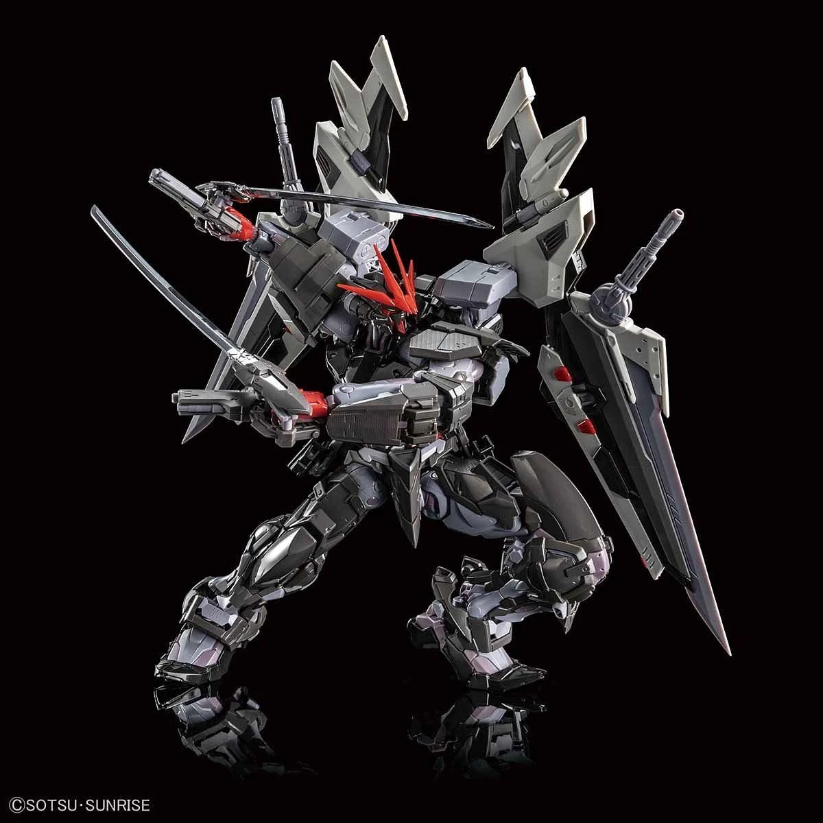 Bandai’s incredible Hi-Resolution Model of the Gundam Astray Noir, as seen in “Mobile Suit Gundam Seed Destiny Astray B” (serialised in Dengeki Hobby magazine), features the Noir Striker, which can reproduce its flight mode! It also has a deployable Noir Cannon on the Noir Striker’s wings, and the beam blade is also removable. The sword pistol’s blade is also newly molded and plated for a brilliant gleam! Order yours today!