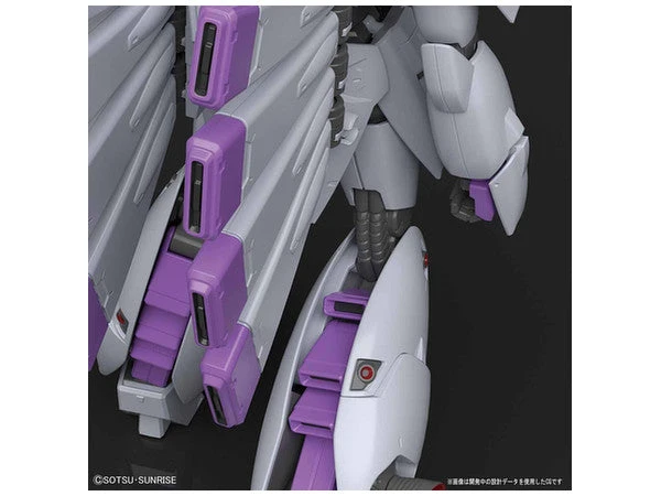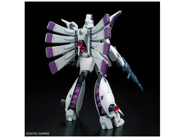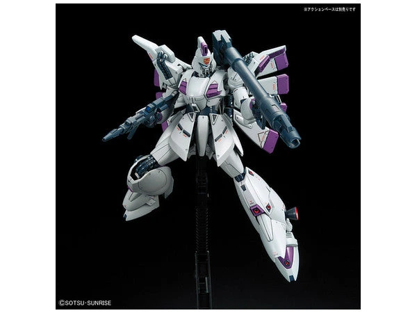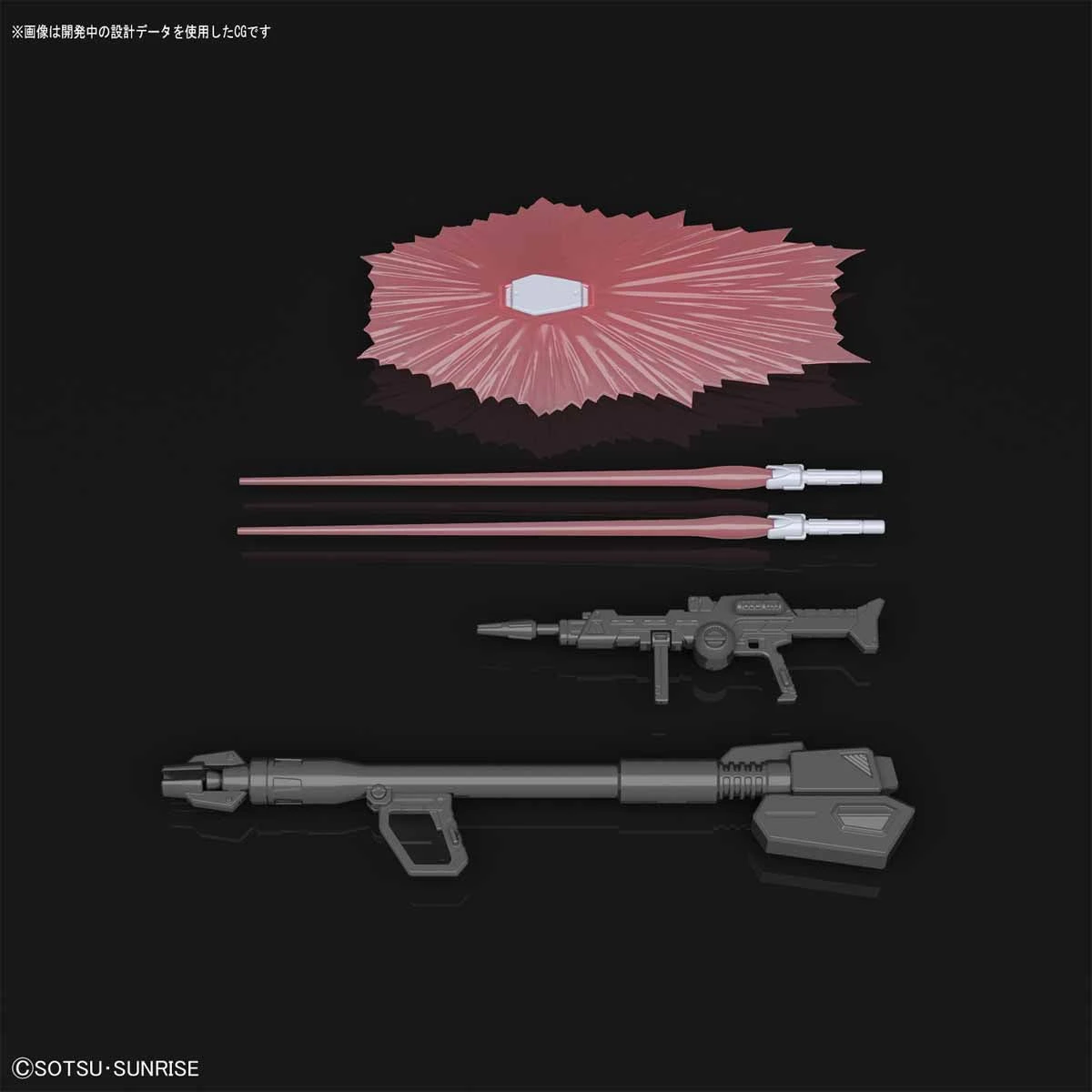 The Vigna-Ghina from the 1991 animated film “Mobile Suit Gundam F91” makes its first appearance in the RE/100 lineup! The kit includes two types of cockpit hatches, and both forms can be recreated using the included marking seals for its head. Careful work has gone into making the kit extremely posable without altering the suit’s design, such as the calf duct moving together with the knee joint. In addition, each of its eight characteristic fin nozzles can move independently. The Vigna-Ghina comes with a big selection of araments, including the beam shield, which has been recreated using clear plastic.