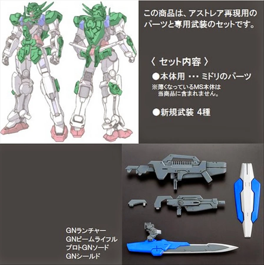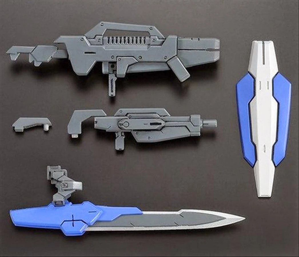(Armed) GN Launcher, proto GN sword, GN Beam rifle, GN shield