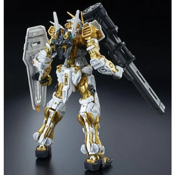 From “MOBILE SUIT GUNDAM SEED ASTRAY”, the GUNDAM ASTRAY GOLD FRAME has been commercialized in the RG Series.Recreating the 350mm Rail Bazooka Bolt” with details conform to RG! Recreating the lost arm scene in the OVA. Including parts exclusively usable with the right arm shoulder in a new shape. Rendering the shiny aspect of the golden frame by adopting a metallic color made of a 3-color molding.