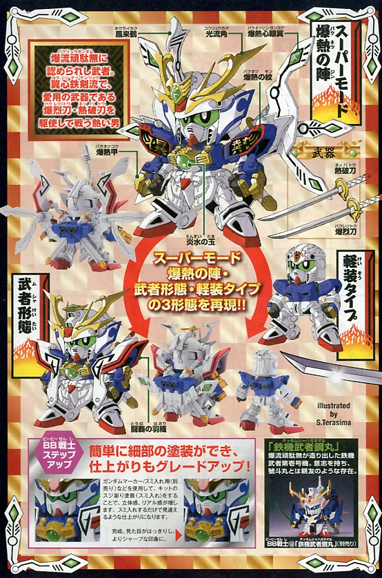 One of the most popular characters from the 90s SD lineup has joined the updated Legend BB series! Legend Musha Godmaru converts to Light-armed type, Musha form, and super mode “Bakunetsu-No-Jin.”