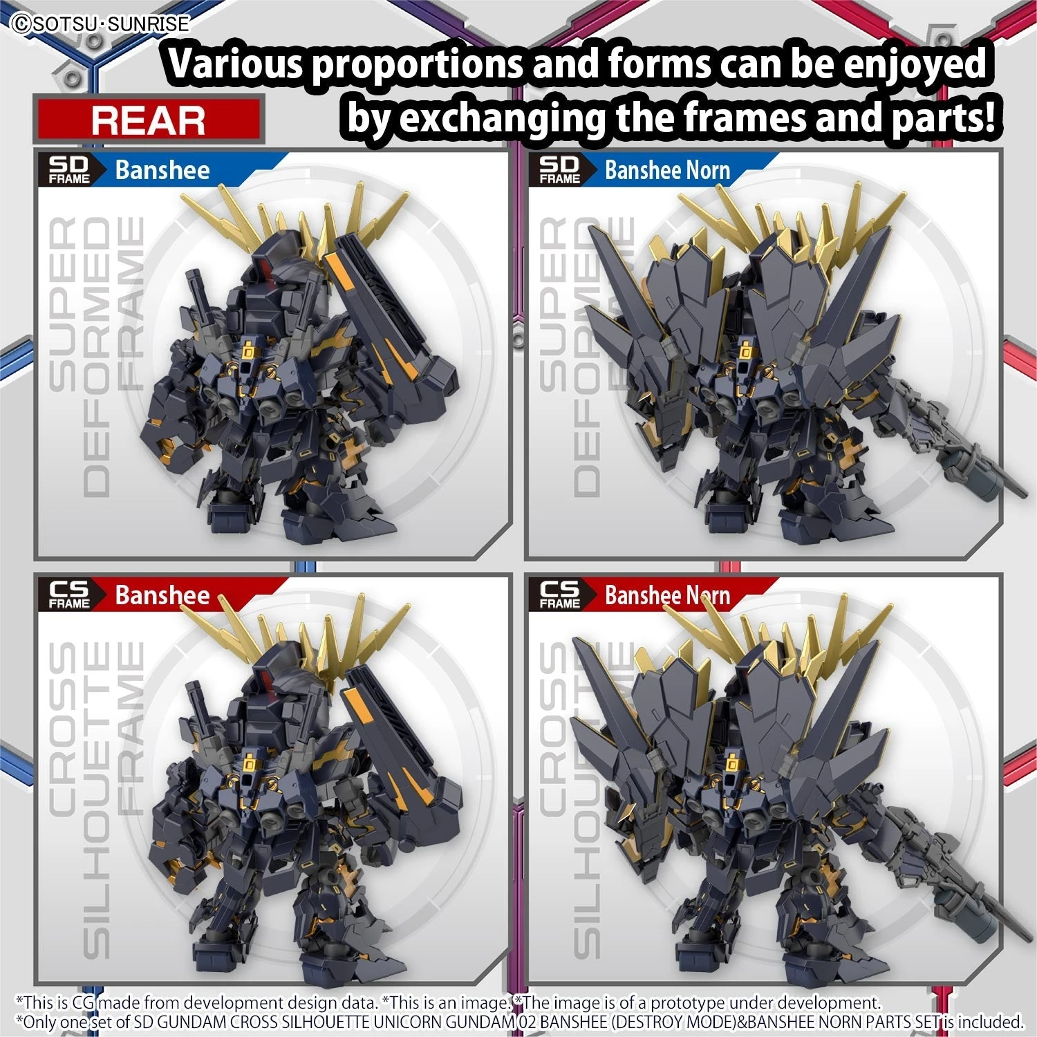 The Unicorn Gundam 2 Banshee in Destroy Mode joins the “SD Gundam Cross Silhouette” model-kit lineup from Bandai!