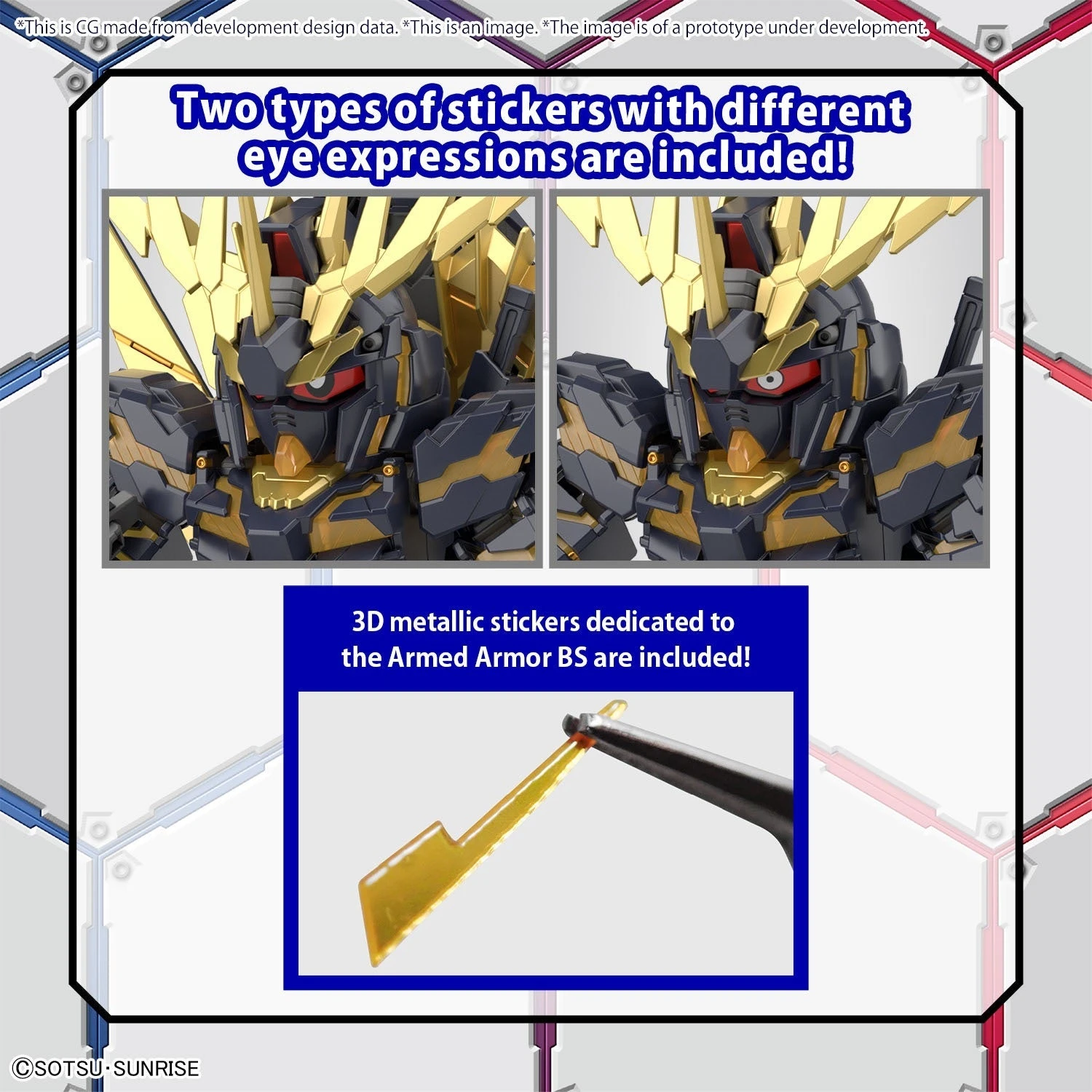 It comes with a smaller SD frame, as well as a slightly taller CS frame with more realistic proportions; a wealth of weapons that can reproduce the Banshee and Banshee Norn are included too. Three types of armed armor and a revolving launcher are included, all newly molded; 3D metallic seals for the Armed Armor BS is included, as are two types of eye expression stickers.