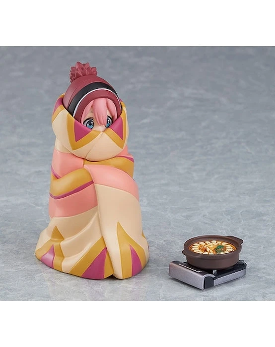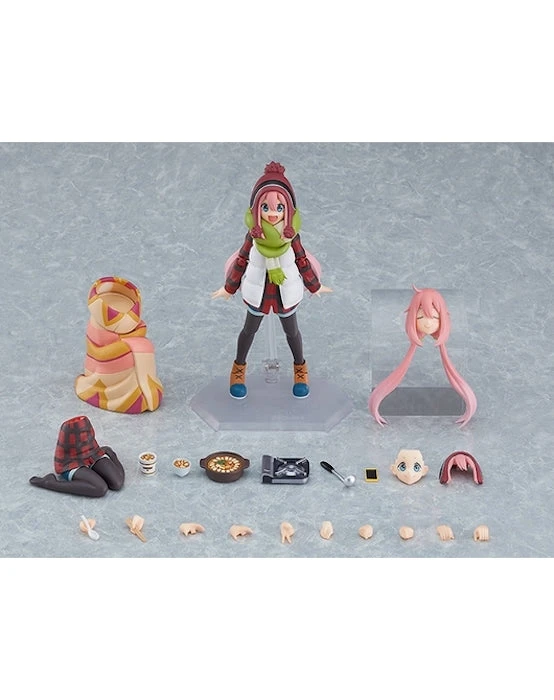 “Let’s go on a proper camp next time!”From the anime series “Laid-Back Camp” comes a DX figma of the main character Nadeshiko Kagamihara!Using the smooth yet posable joints of figma, you can create a variety of poses.A flexible plastic is used for important areas, allowing proportions to be kept without compromising posability.She comes with three face plates including a smiling face, a cheerful face and a smiling face with closed eyes!She comes with a cup of curry noodles, chopsticks, her smartphone and alternate lower body parts to display her sitting!The DX edition also includes an alternate body to display her wrapped up in a blanket, an alternate head part without her hat on, a gyoza hot pot, gas stove, bowl, soup spoon and ladle!An articulated figma stand is included to display the figma in a variety of poses.