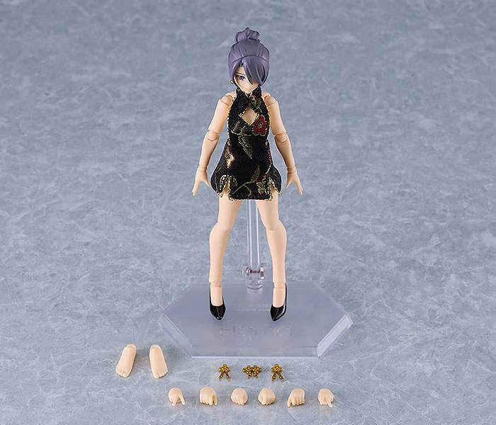 The figma Styles character Mika appears in a black Chinese dress outfit! The figma Styles character Mika, now wearing a chic Chinese dress outfit featuring a mini skirt in black!