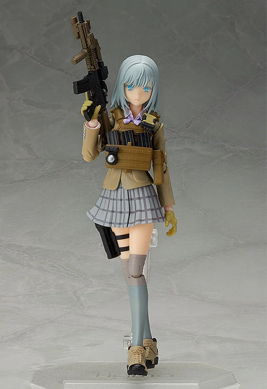 Rikka Shiina headed out again as a figma wearing her elite school tactical uniform! From TOMYTEC’s ‘Little Armory’ 1/12th scale weapon model series comes a figma of one of the series characters – the elite tactical girl’s school member, Rikka Shiina! · The smooth yet posable figma joints allow you to act out a variety of different scenes. · A flexible plastic is used in specific areas, allowing proportions to be kept without compromising posability. · She makes use of drawer joints in her shoulders allowing her to easily wield the ‘Little Armory’ weapons. · A plastic model runner kit for a Special Forces Carbine Rifle is included. The model is limited to the figma release and includes a holographic sight, muzzle booster, laser module, light, dual switch and foregrip as optional parts to attach to the weapon. · She comes with both a standard expression and a more serious expression for combat scenes. · Optional parts include an alternate skirt to pose her crouching, as well as a handgun with mounted light that can be holstered, and a transceiver. · The background sheet of the product comes with two different target practice targets that can be cut out and displayed with her as a training ground. · The package includes an original illustration by illustrator Haruaki Fuyuno. · An articulated figma stand is included, which allows various poses to be taken. – Who is the Little Armory’s Rikka Shiina? – Rikka Shiina is one of the characters seen on the Little Armory packaging, illustrated by Haruaki Fuyuno. She plays a part in the defense of the region as one of the students at the Jyoushuu Girls Academy