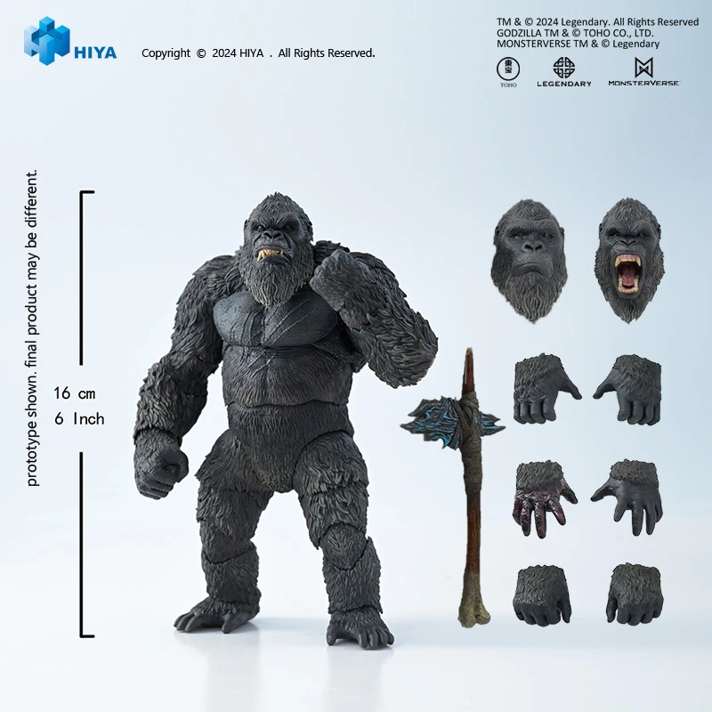 With comprehensive upgraded joints, providing a wide range of motion for recreating various poses, such as quadrupedal stance, or criss-cross. Accessories include a translucent battle-ax and 3x pairs of interchangeable hands, allowing you to recreate iconic scenes. About the head sculpt, in addition to normal face, roaring battle face, and snarling face, enabling you to depict a more dynamic and fierce Kong, capturing the essence of the mighty king!