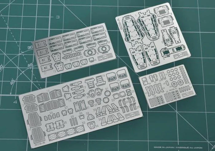 Photo-etched metal detail-up parts for your MG Dynames model kit.