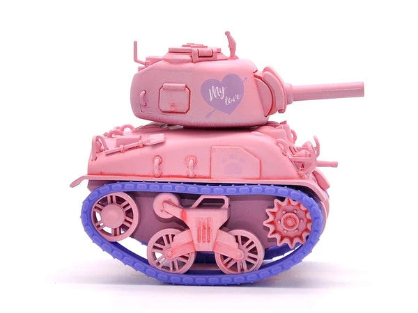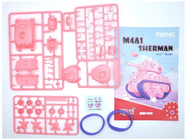 Meng continues their line of cute super-deformed kits from the hit game “World War Toons” with the release of a new pink M4A1 Sherman! Flexible purple tracks and decals for the markings are included. The cats are not included.