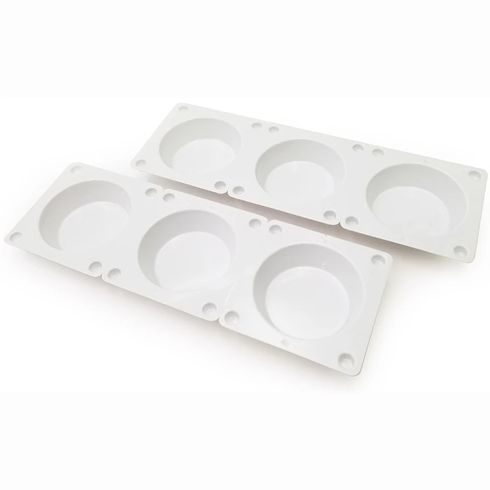 These disposable paint palettes are in rows of 3 cups; you get a total of 24 of them. They can be snipped apart with a pair of shears if you’d only like to use one at a time. They’re lightweight plastic for ease of handling and cleanup, and can be thrown away or recycled when you’re done. Perfect for us with the Brush Painting All in One set, and very handy in general!