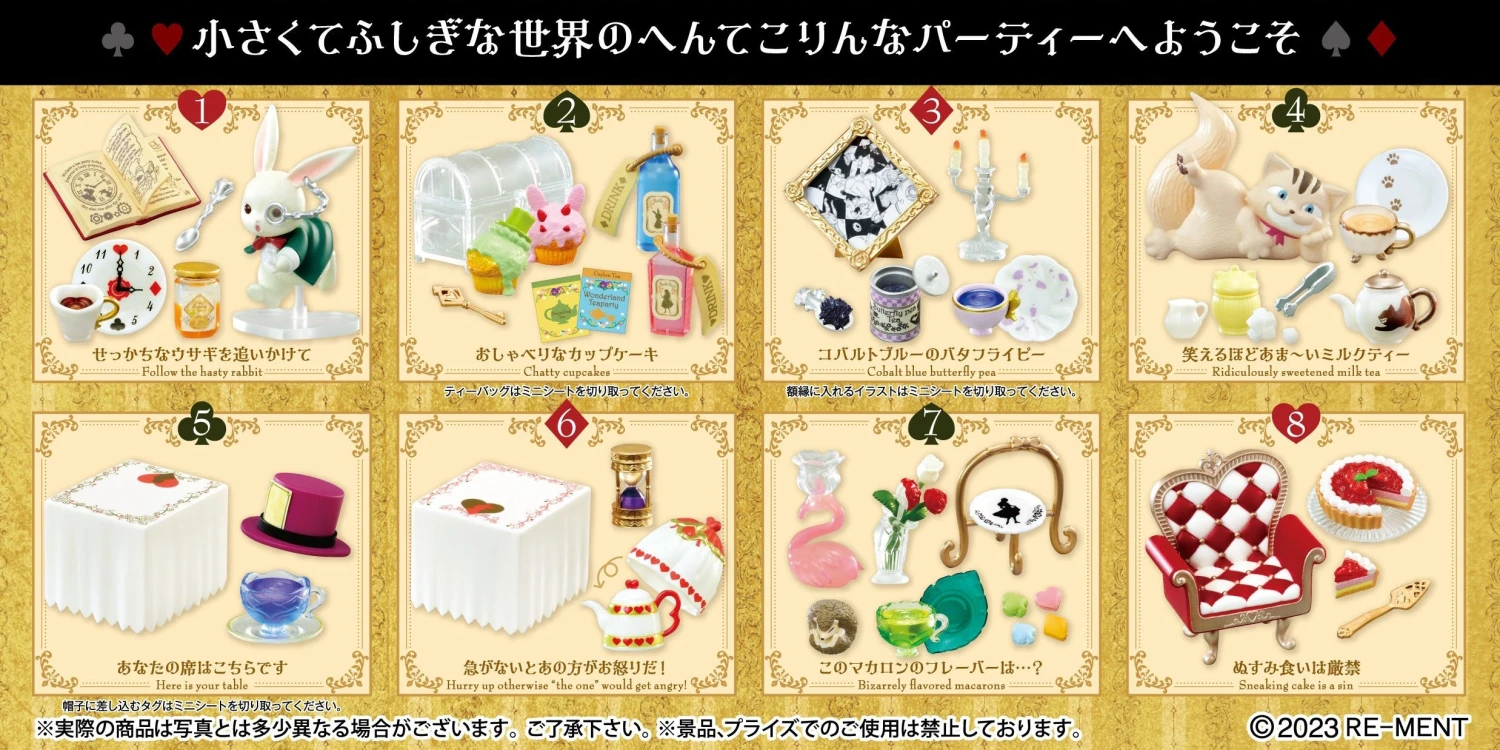 This “Petite Sample” lineup from Re-Ment is your invitation to a tea party in Wonderland! Each item is loaded with detailed miniature versions of tableware, teacups, delicious-looking food and so much more! There are eight different items, and you’ll get one of each. Get ready to tumble down the rabbit hole, and order yours today!