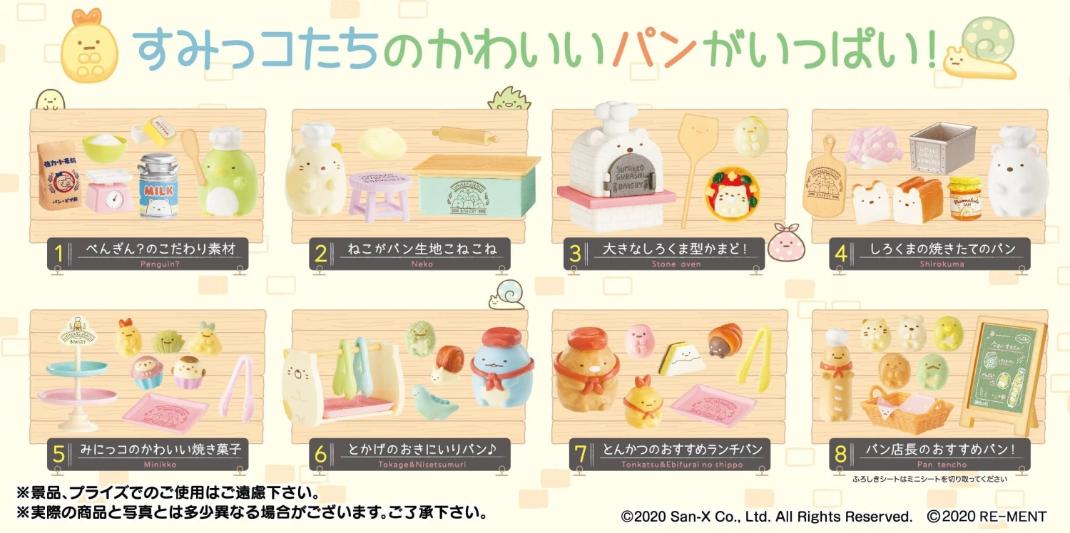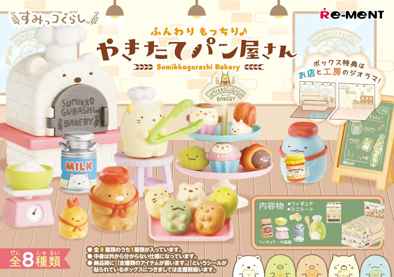 The sweet “Sumikko Guarashi” characters have decided to start their very own bakery! This re-released set from Re-Ment features everything they need — a big stone oven, ingredients, display items and more! You’ll; be able to set up a complete scene on your collection shelf with these fun items, which includes the debut of the bakery manager figure! You’ll get one each of all eight items in the box — order yours today!