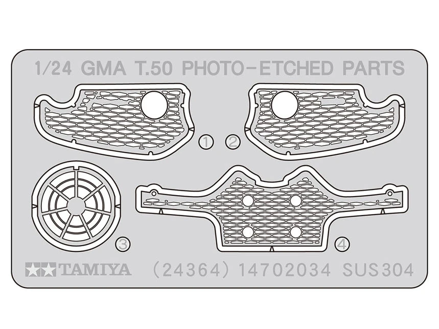 - Photo-etched parts are included to depict the mesh sections of rear bumpers and are attached without using instant cement.
