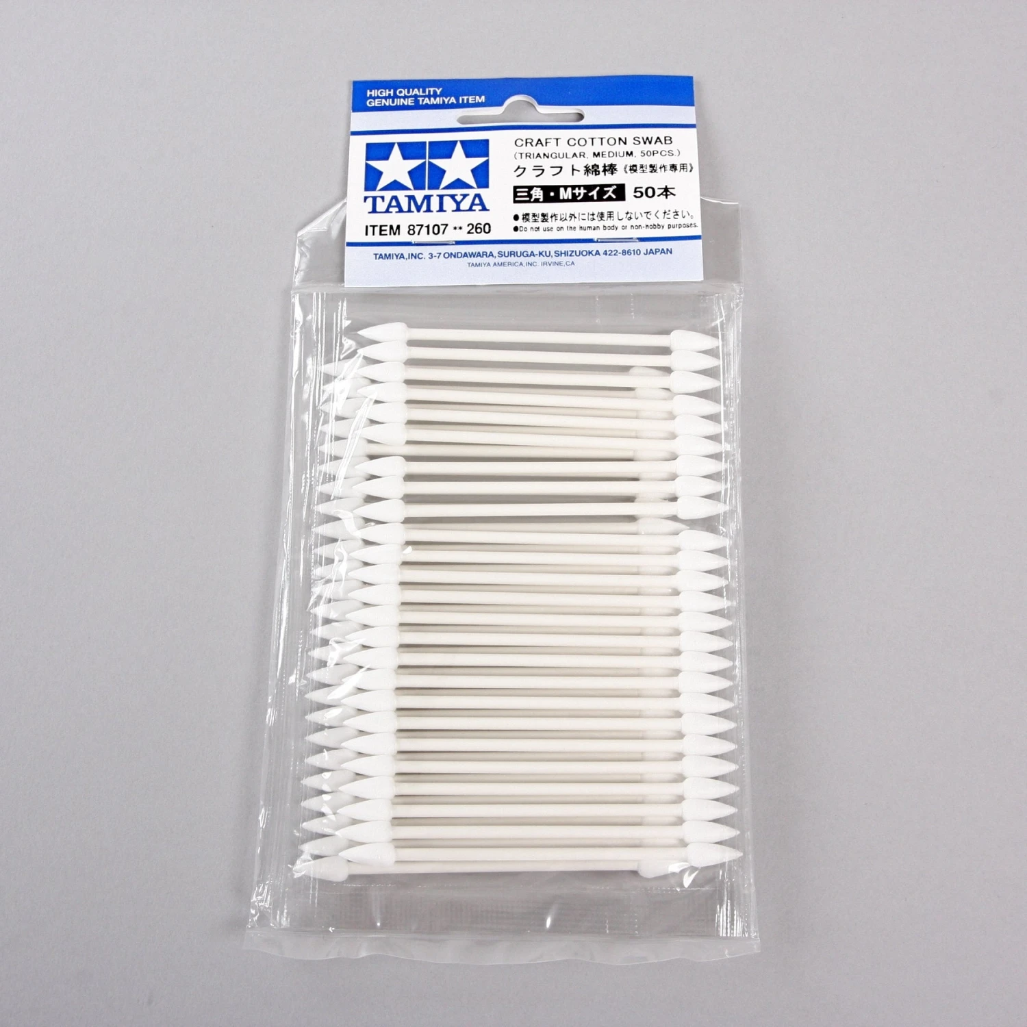 When building a scale model, cotton swabs are often used with painting and applying decals. However, cotton swabs bought from supermarkets usually have loosely spun tips and quickly lose shape. These Craft Cotton Swabs have tightly spun cotton tips and are easy to use, making them much better suited for hobby use.