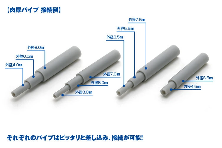It is a plastic pipe which can be used for model making, remodeling, detail up and making of self-made parts. With plastics (styrene resin / PS) similar to ordinary plastic models, it is possible to use adhesive for plastics, paint!